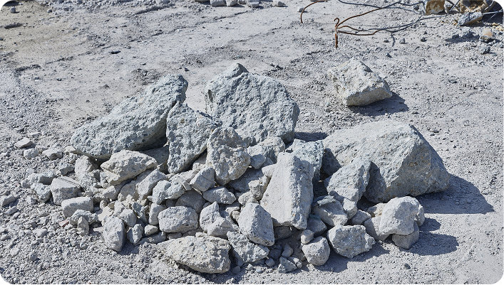 私たちはこの潜在的なCO₂吸収固定能力を最大限に引き出すため、独自の製造方法と革新的な工夫を凝らした技術開発を重ねてきました。その結果、一般的な再生砕石と比べ、より多くの二酸化炭素を吸収固定できる脱炭素再生砕石を開発しました。私たちはこの再生砕石の可能性を世に広め、脱炭素社会の実現に貢献します。